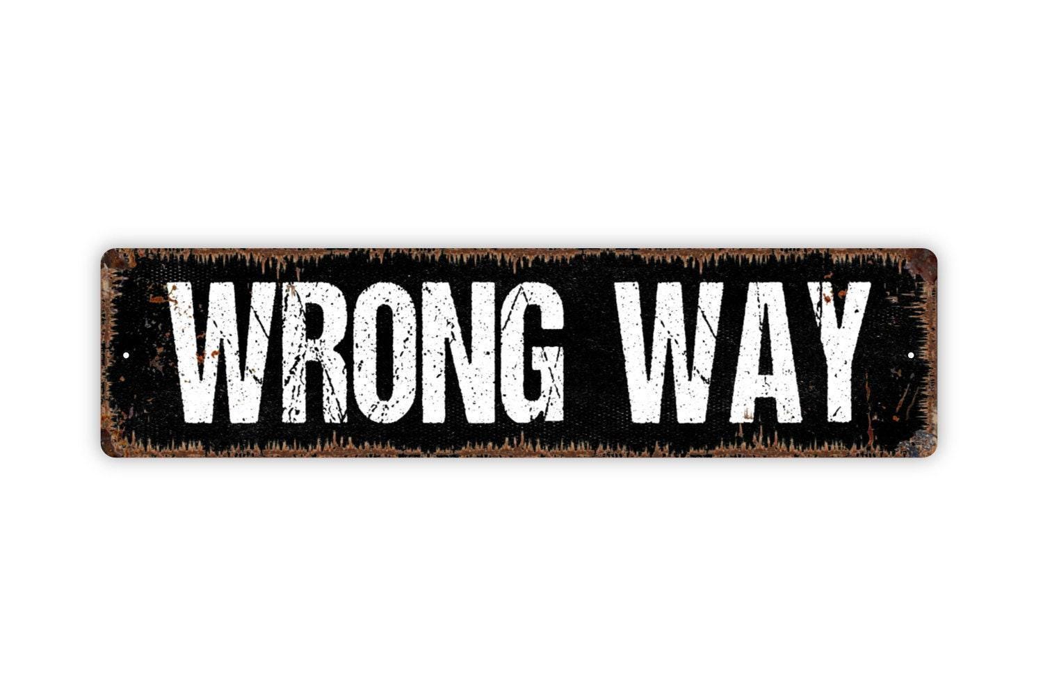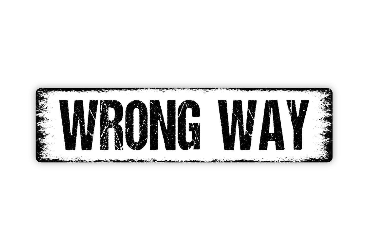 Wrong Way Sign - No Thru Street Private No Trespassing Vinyl Sticker Or Street Metal Sign or Door Name Plate Plaque