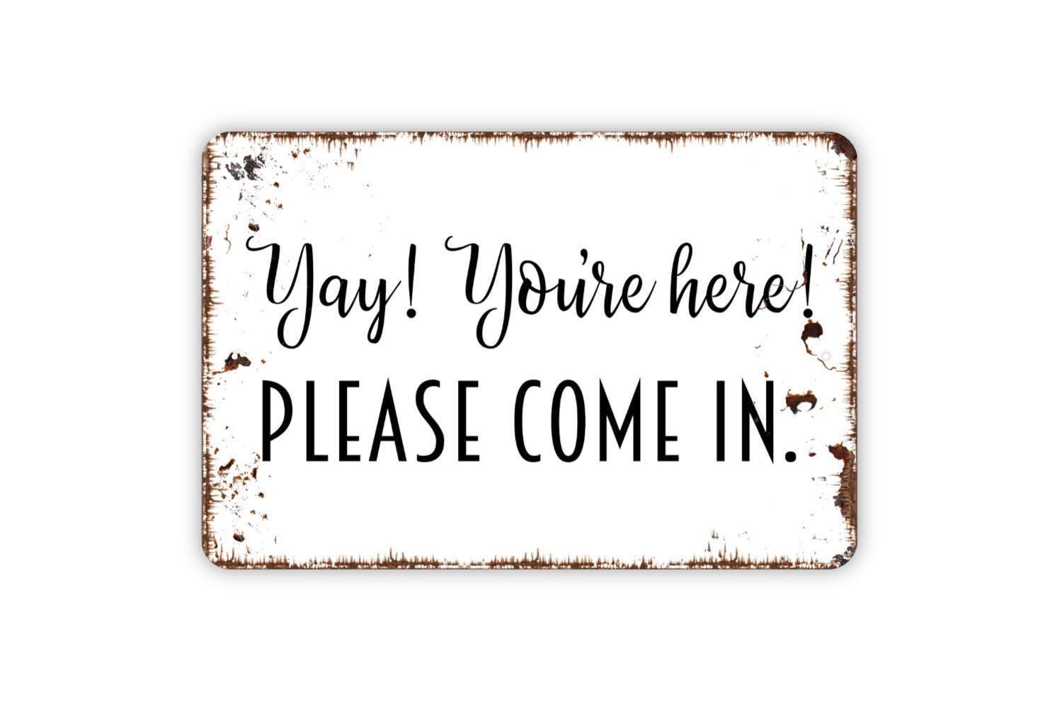 Yay You're Here Please Come In Sign - Welcome to Our Home We're Open Business Metal Wall Art - Indoor or Outdoor