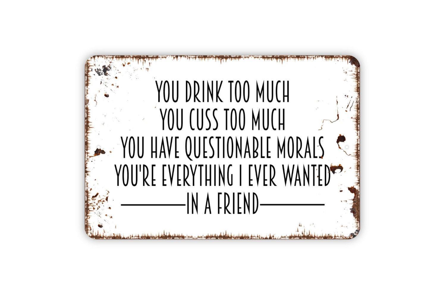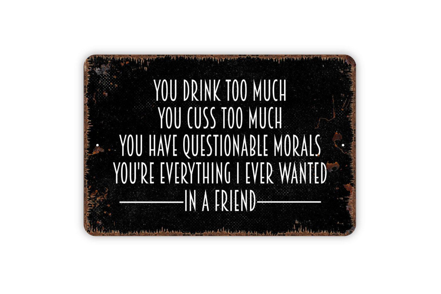 You Drink Too Much You Cuss Too Much Sign - Funny Metal Indoor or Outdoor Wall Art