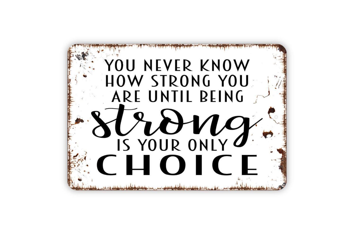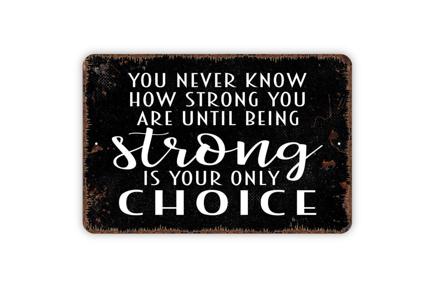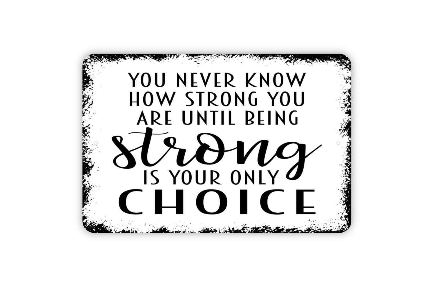 You Never Know How Strong You Are Until Being Strong Is Your Only Choice Sign - Inspirational Metal Wall Art - Indoor or Outdoor