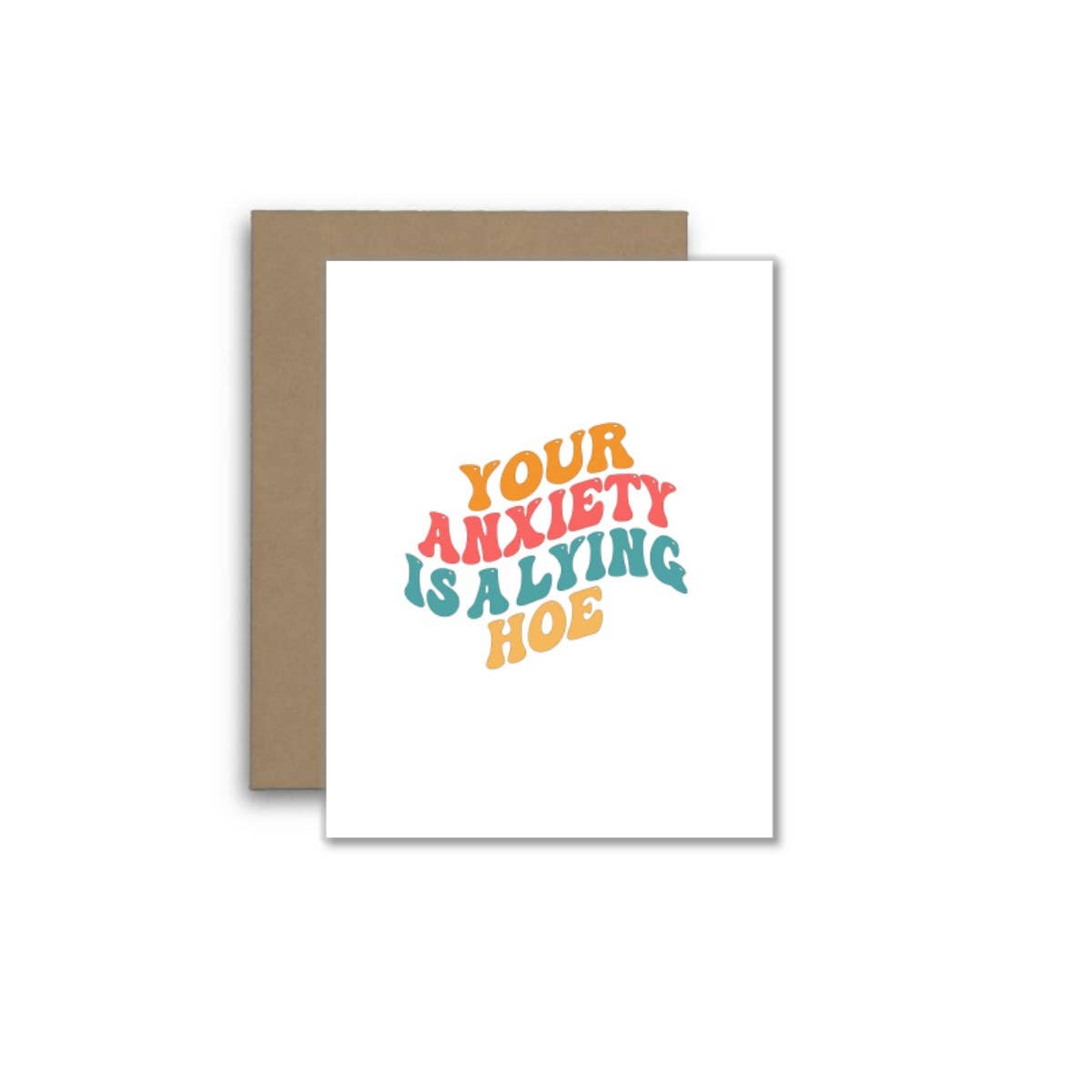 Your Anxiety Is a Lying Hoe Card – Funny Encouragement Menta
