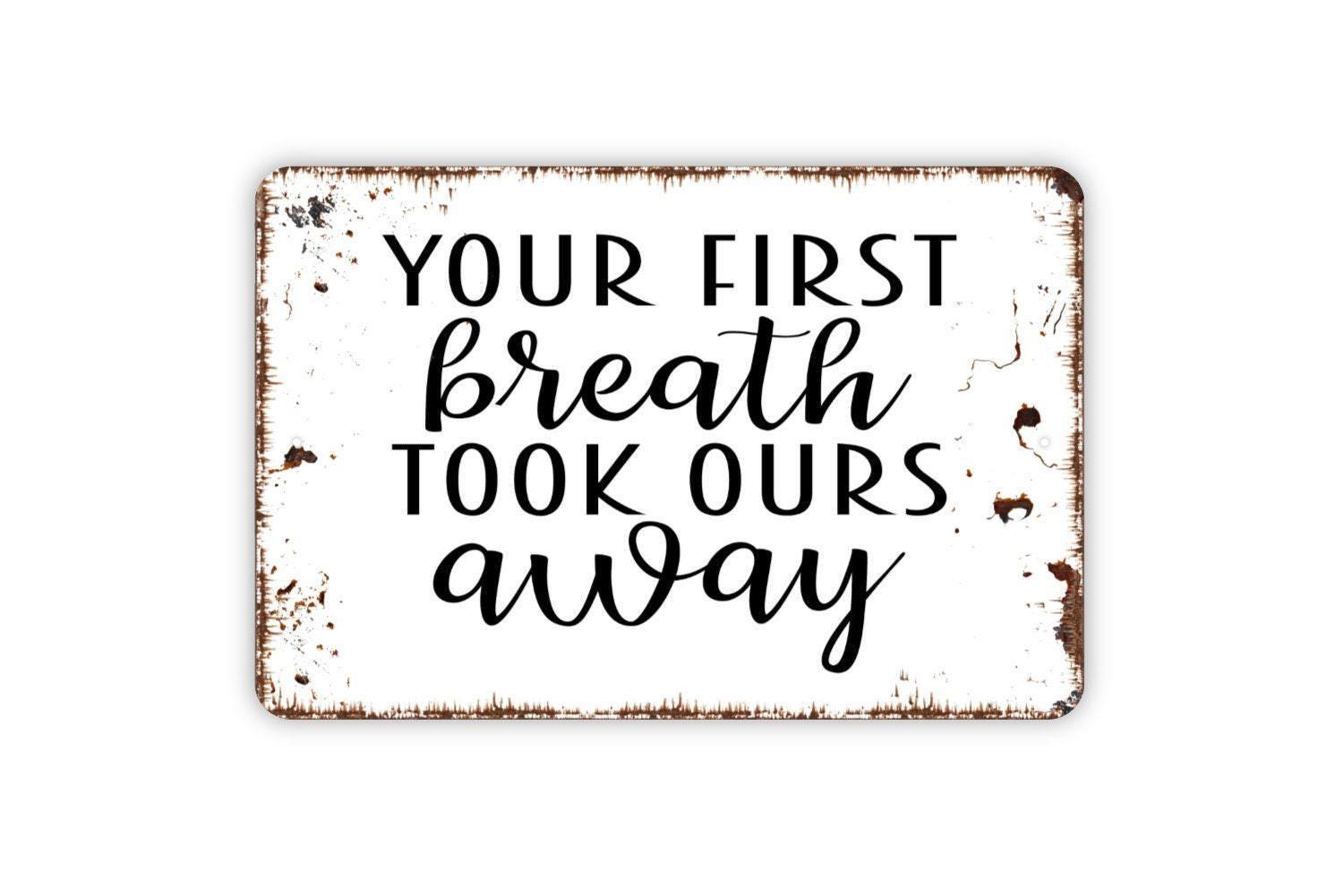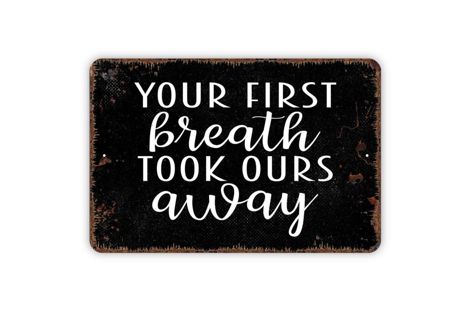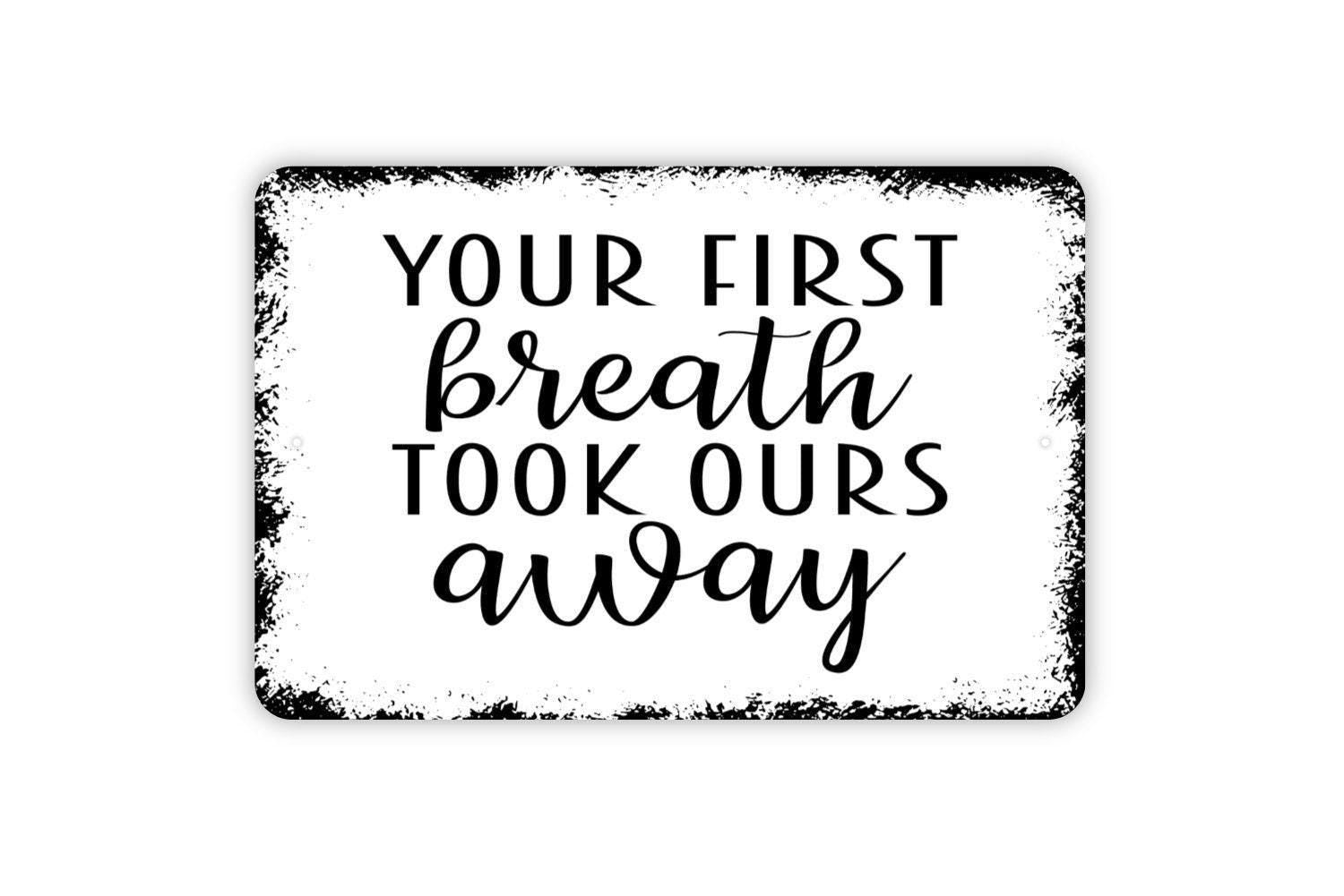 Your First Breath Took Ours Away Sign - Kids Bedroom or Nursery Metal Wall Art