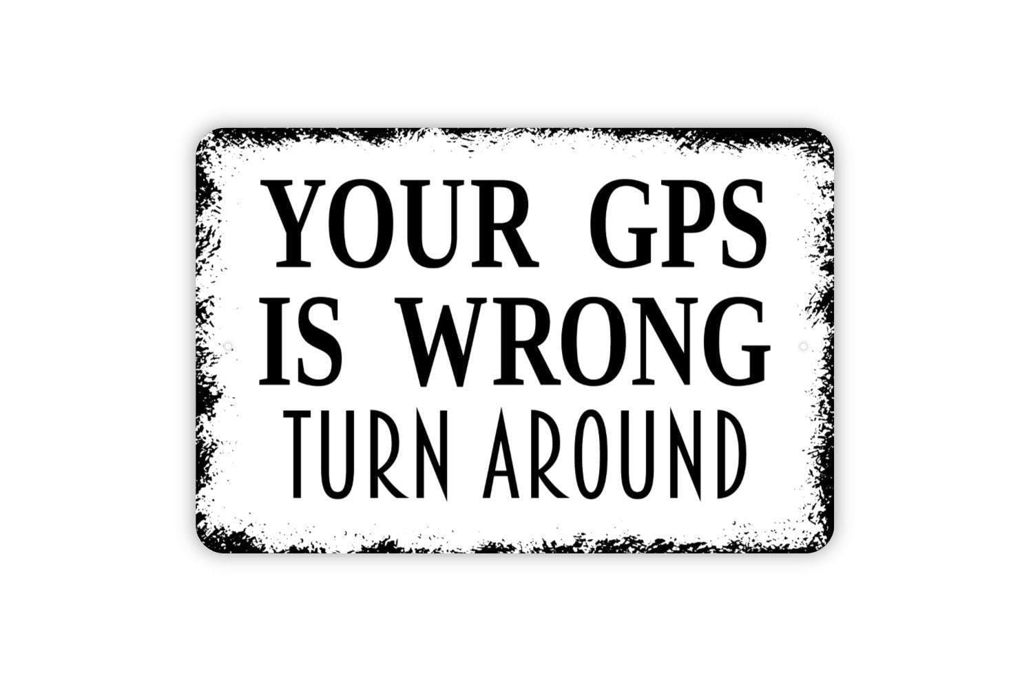 Your GPS Is Wrong Turn Around Sign - Private Road Metal Sign Wall Art Indoor Or Outdoor